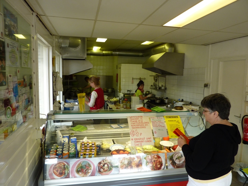 Fatigued by our adventures, before we fell asleep again, we crossed Lomanstraat to a small Thai take-out restaurant on the corner where, with the help of the staff and customers, Reggie deciphered the Dutch menu of Thai food and we went home to enjoy chicken in spicy sauce with rice, vegetable rolls and a nice Thai Lager.