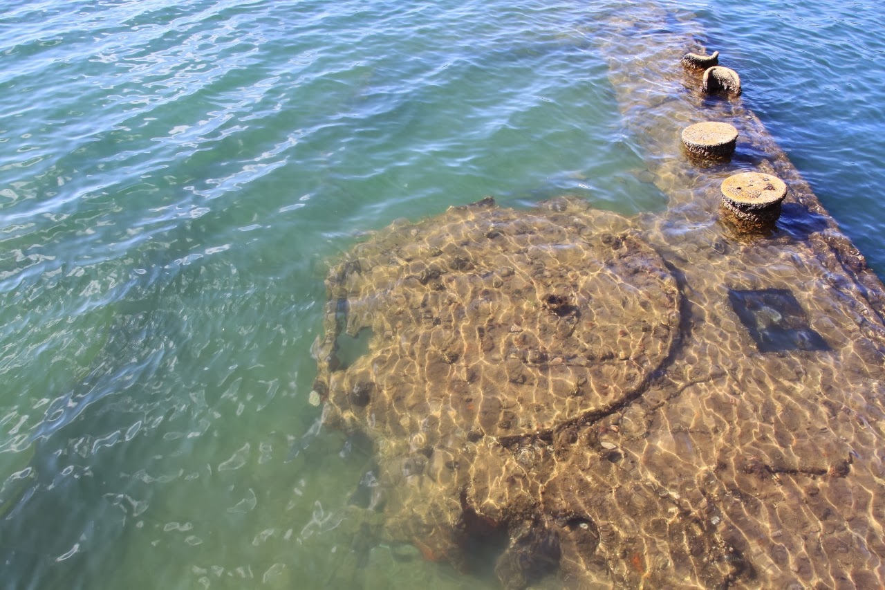 We had an hour to wander through museums and gift shops, then after a short wait (ironically a Japanese tour group was shown into the theatre before the rest of us) we were ushered into one of two waterfront theatres for a 20 minute presentation on December 7, 1941. A very somber, sobering film. At film's end, we were shown through the exits to a Navy launch which ferried the 100-or-so of us out to the USS Arizona Memorial, built over the sunken wreck of the ship near Ford Island. There, we scrambled off and spent a reflective 15 minutes suspended over the grave of the 900 men still entombed in the ship.